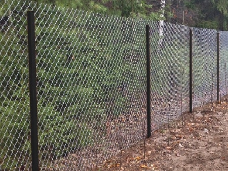 Забор из сетки рабицы в натяг